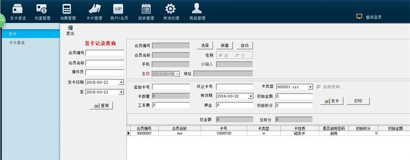 軟件簡介:本軟件適合分店較少、網絡情況較好的企業,發行含有儲值、積分功能的會員卡。總店運行會員管理后臺軟件,分店收銀PC機聯接讀卡器,作為刷卡消費終端,分店PC機通過網絡與后臺軟件通信,完成各類會員卡交易。適用磁卡、M1卡、CPU卡等。