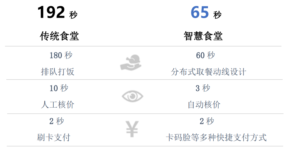 智慧食堂,讓線下選餐和支付更加快捷,實(shí)現(xiàn)員工“進(jìn)入食堂、支付就餐”在 1 分鐘左右完成,讓員工更多時(shí)間享受美食: