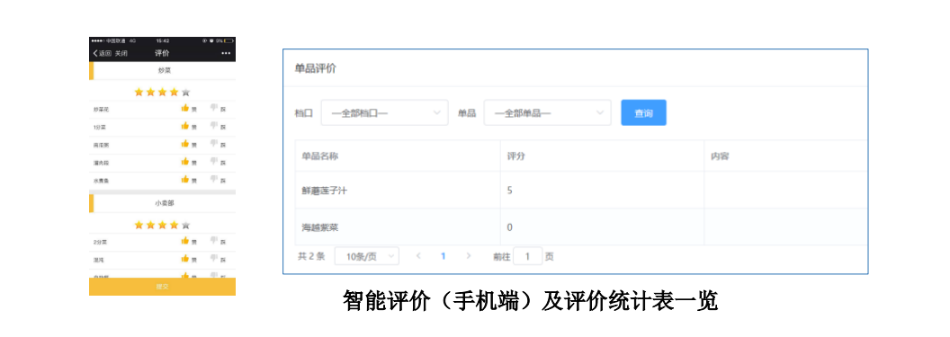 智能評價(jià),使員工就餐后可在網(wǎng)上直接評價(jià)菜品質(zhì)量,通過統(tǒng)計(jì)分析,助力于食堂隨時(shí)聆聽員工建議、不斷優(yōu)化菜譜結(jié)構(gòu)與服務(wù)模式,合理備餐、精準(zhǔn)運(yùn)營。
